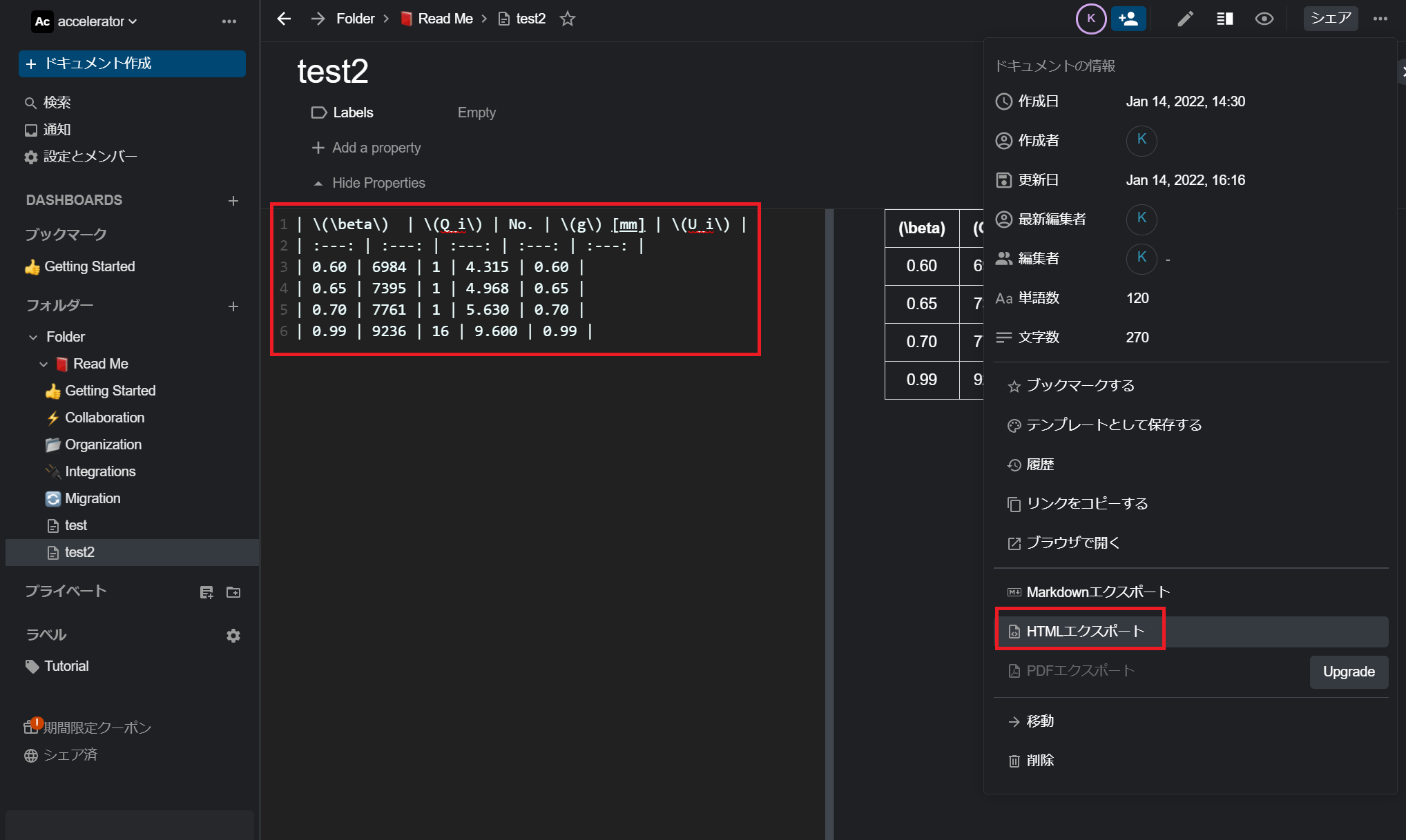 結論から言うと忍者ブログの場合、管理ページ>共通タグの設定></head>タグに上記コードを記入します。 これをどこから持ってきたかですが、Markdown(マークダウン)エディタでもあるBoostNoteからです。 簡単な流れを説明するとBoostnoteから登録を行います。 次に、マークダウンで表を作成してHTMLで出力して、テキストをコピーして忍者ブログのソースコードタグに張り付けるだけです。 このダウンロードしたHTMLファイルを見ると<head>~</head>に囲まれた記載があると思います。これを忍者ブログの</head>タグに追加しただけです。