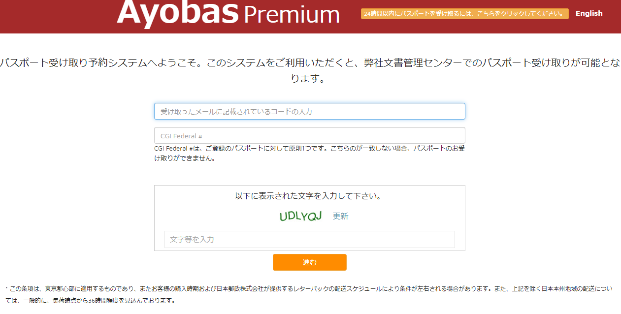 ようやく面接を終えてパスポートピックアップ可能になりました。受け取り方法はAyobas premiumを使っての郵送か、CGI Federal文書配達センターでのピックアップ受領です。