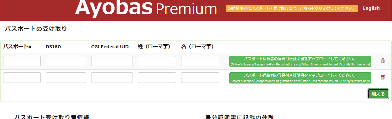 あとここで注意!パスポート保持者のパスポート以外の写真付き証明書が無いとこのサービスは受けられません。受け取り方法のインストラクションにも書いてありますが、私は読み飛ばしており、苦労しました。